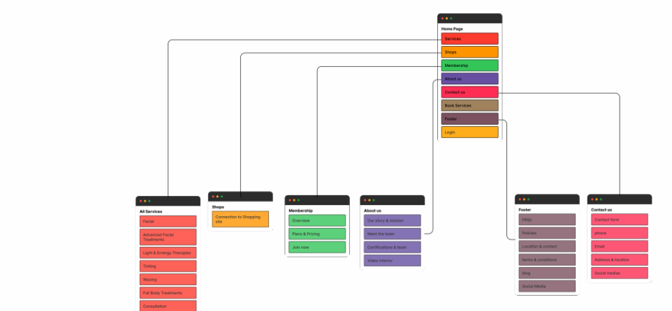 We analyzed several successful skincare and med-spa websites — such as Heyday, Glowbar, and SkinSpirit — to understand how they communicate trust and structure their booking flows.