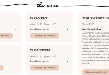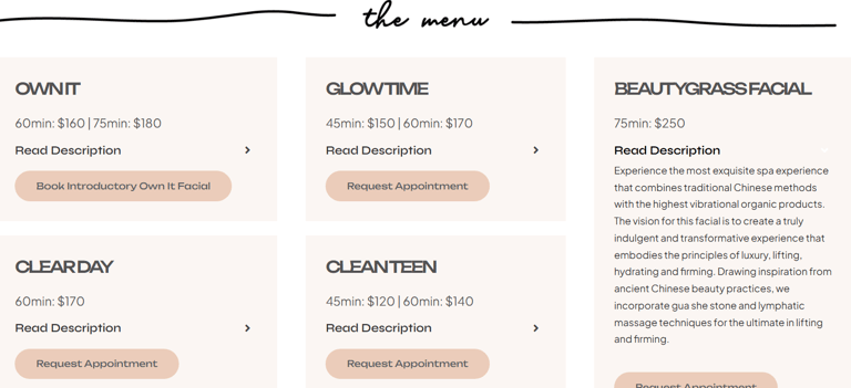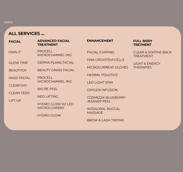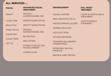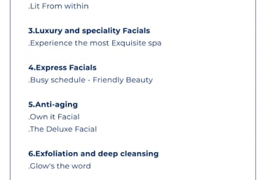 Group services into clear categories: facials, advanced treatments, add-ons.
