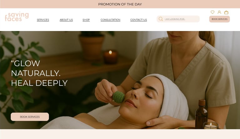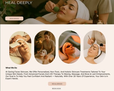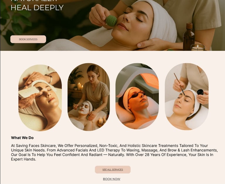 Saving Faces is a neighbourhood clinic in Santa Monica offering medical-grade facials and advanced skincare treatments. Their existing website looked outdated, hid important information about services and staff, and made it difficult for new clients to book with confidence.